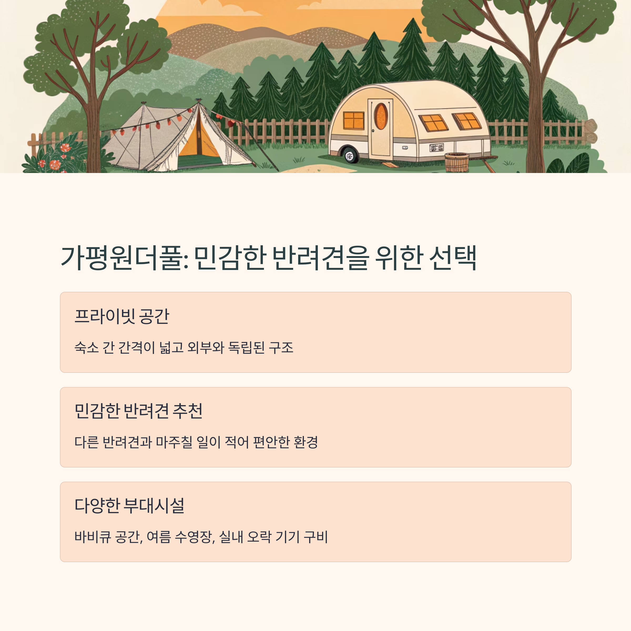 | 원더풀카라반 | 프라이빗 구조 | 바비큐, 실내오락 | 독립 공간, 민감견 추천 |