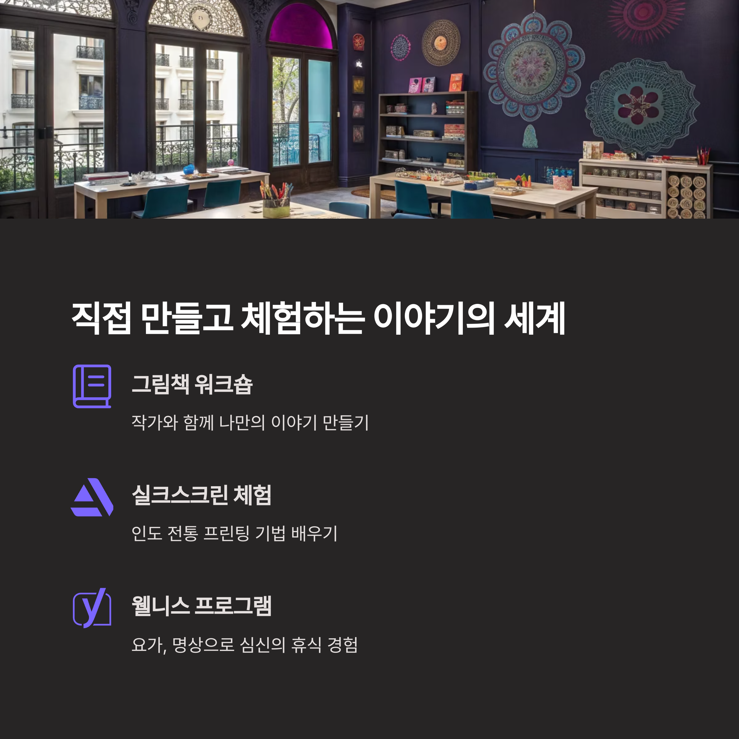 심신의 휴식과 창의적인 활동이 어우러진 하루를 경험할 수 있습니다.