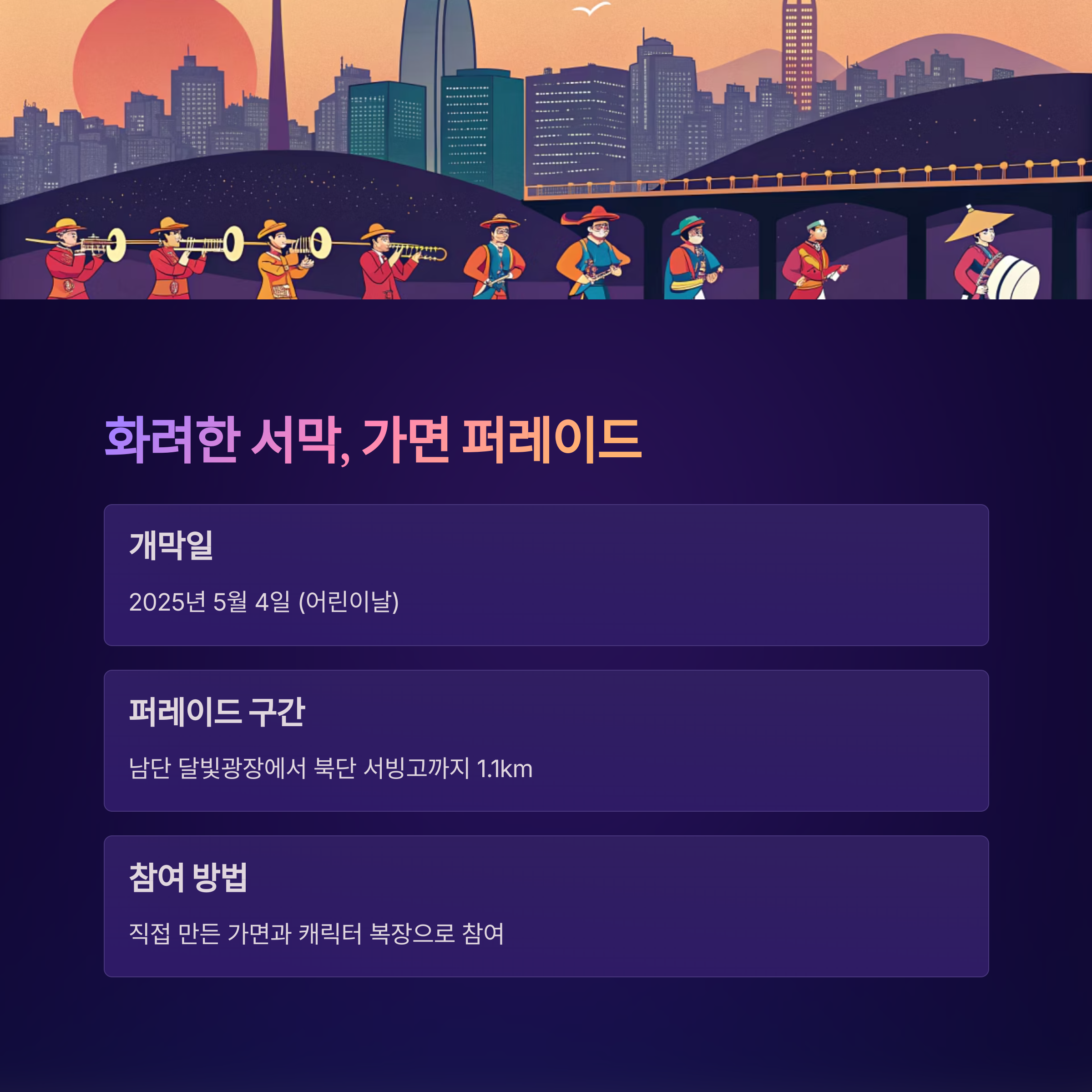 도심 한복판 걷기 여행, 축제의 서막은 ‘가면 퍼레이드’