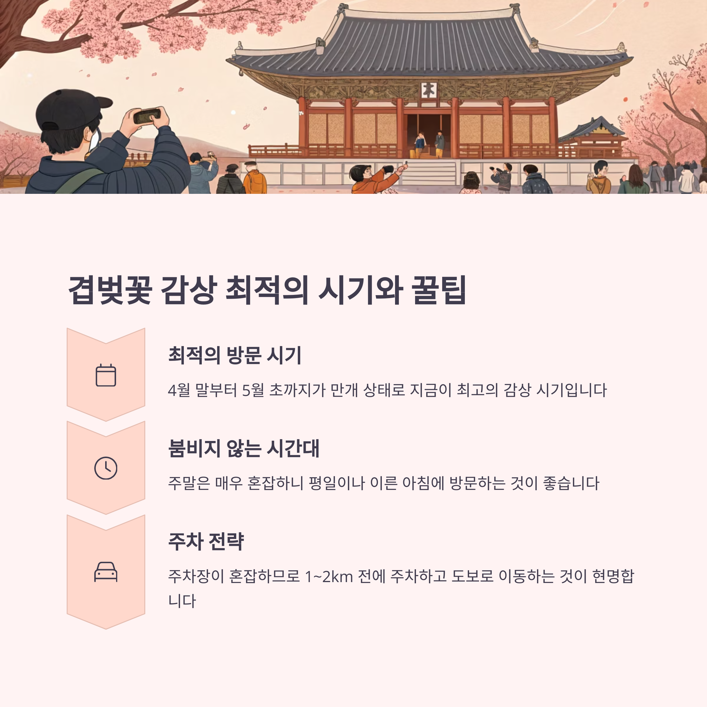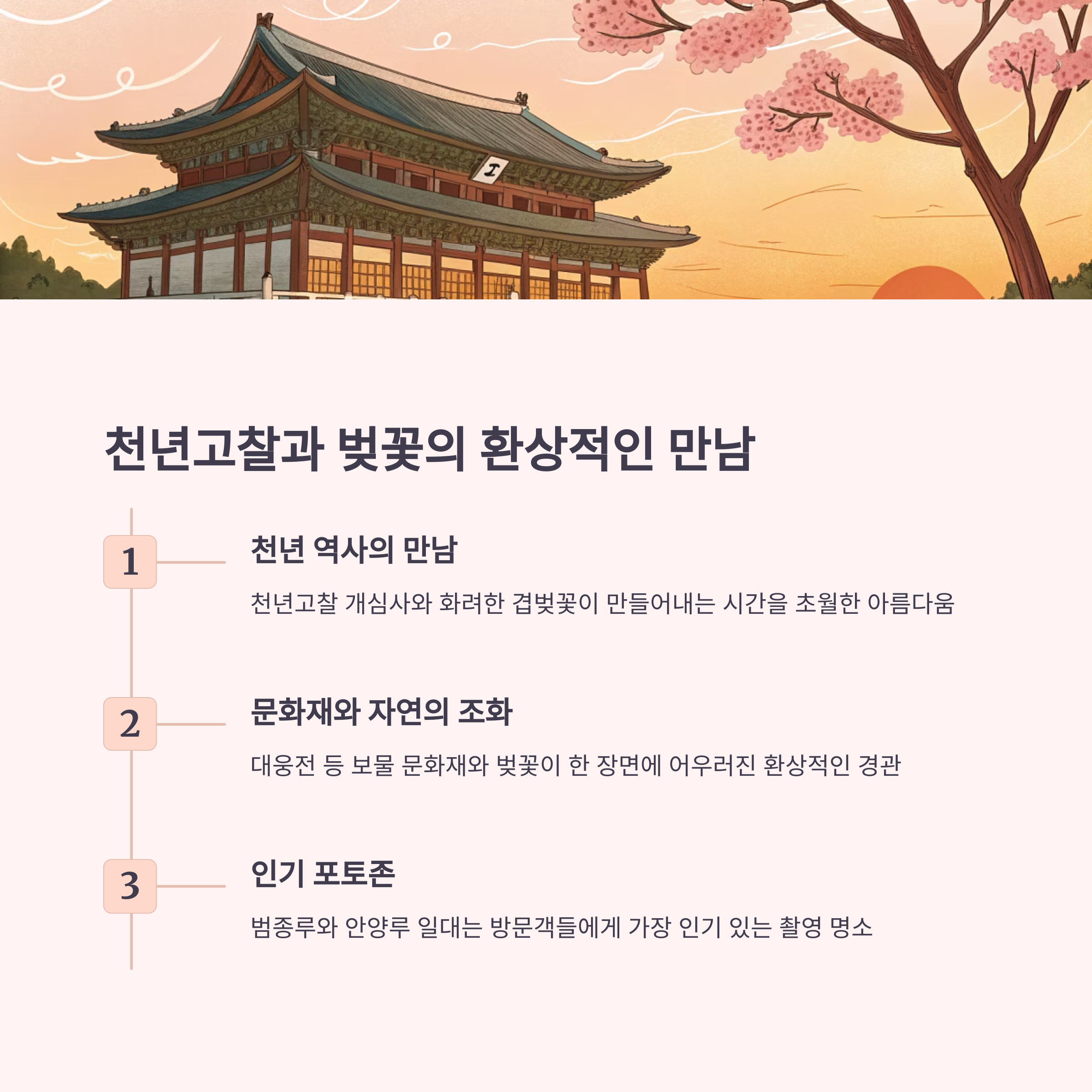 전통 사찰과 벚꽃이 어우러진 풍경