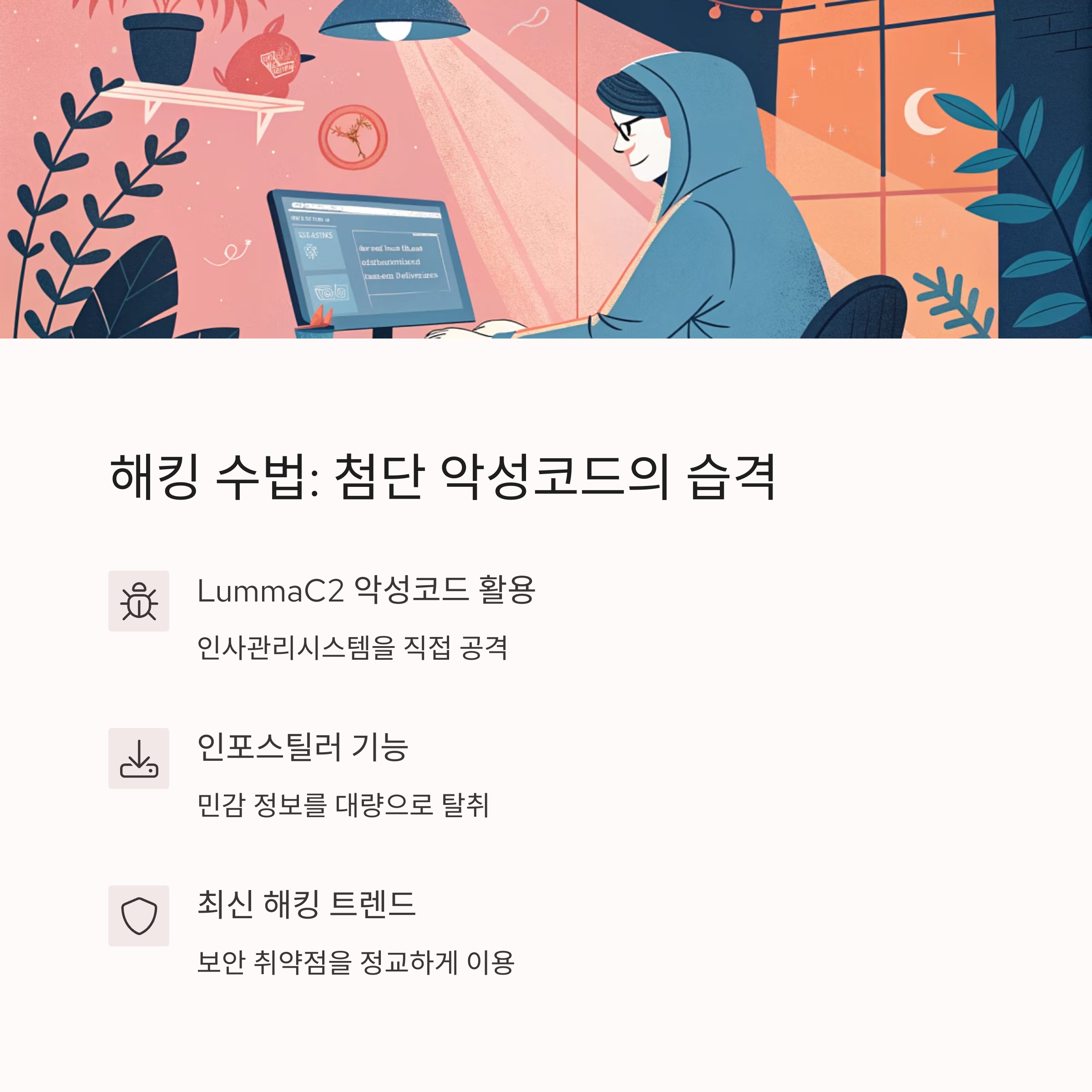 이번 사건에 사용된 수법은 "LummaC2 인포스틸러 악성코드"였습니다